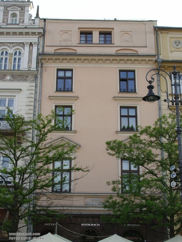 Будинок походить з середини XІV століття як типовий середньовіковий дім, з двома трактами. Через роки, почавши від пожежі з 1475 року будівлю був багато разів перебудовано в кожному з сучасних стилів. У 1770 році кам’яницю купив Ян Шастер, який відкрив тут аптеку «Під Сонцем». Він був засновником фармацевтичних студій в Головній Коронній Школі, тобто реформованому Ягеллонському університеті.