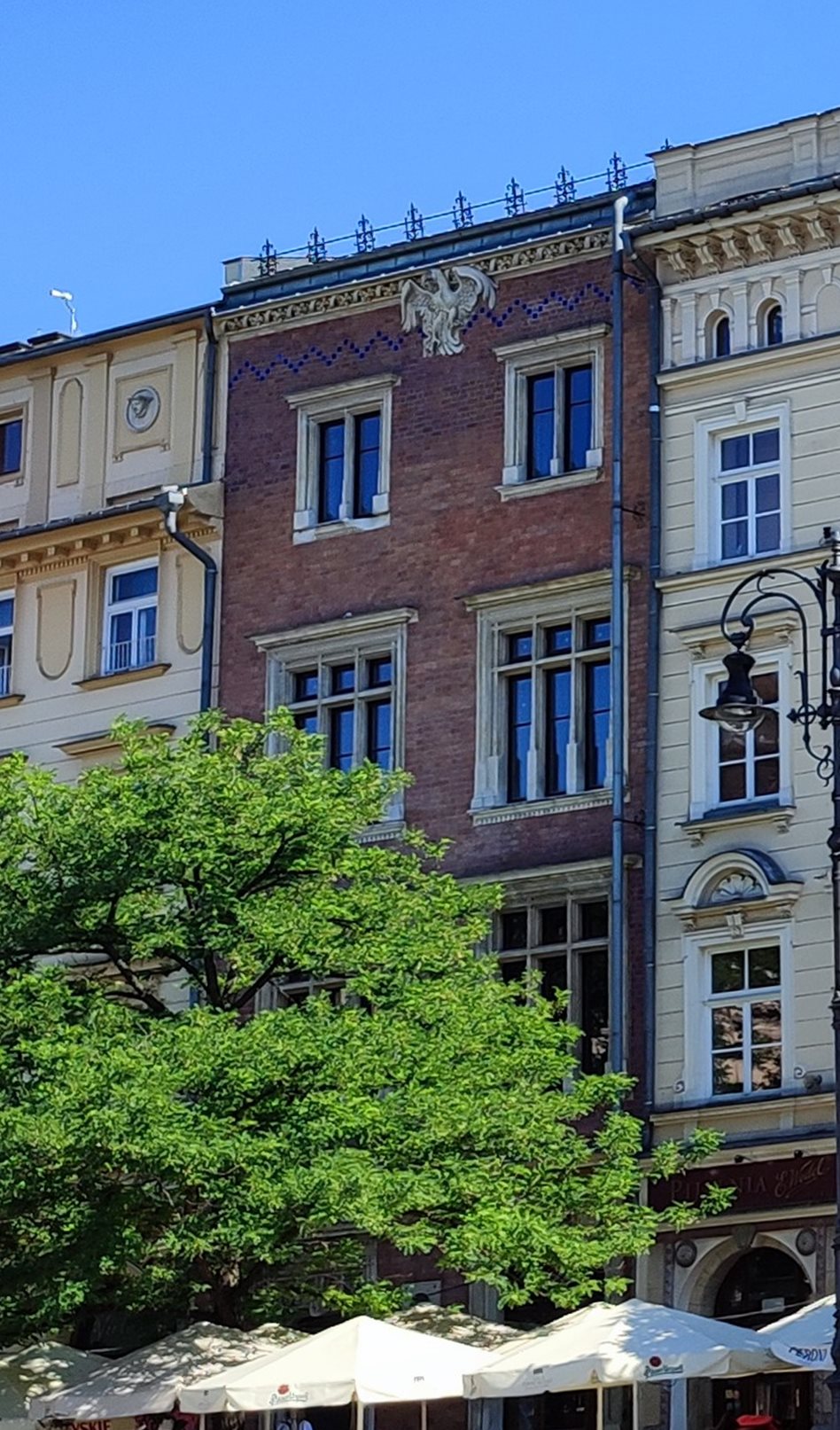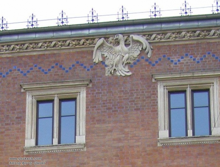 Зарад ми можемо побачити оновлений Владиславом Екільським фасад, поєднуючий стилі ренесансу і готики, а також барельєф фенікса, виконаний за проектом Станіслава Виспянського.
