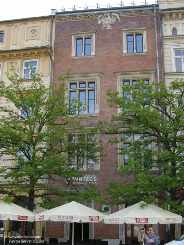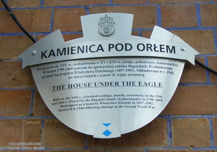 Інша назва – «Під орлом». Двоярусний, мурований будинок повстав в XІV столітті. Під час відродження, після 1544 року належав міському райці Бартоломею Кромеру - рідному брату лікаря і хроніста Мартина Кромера. З цього періоду збереглися численні касетонові склепіння а також стінний розпис у великому залі першого поверху. В 1570 Станіслав Суліковський відкрив тут аптеку. Наступна згадка про неї походить з 1793 року, коли аптеку «Під білим орлом» відкрив Франциск Бугайський. Аптеку з тією самою назвою відкрито також в началі XX століття, з цього періоду походить бідермайеровське прикрашання з мотивом білого орла. Уночі з 20 на 21 жовтня 1795 року в кам’яниці перебував Тадеуш Костюшко.
