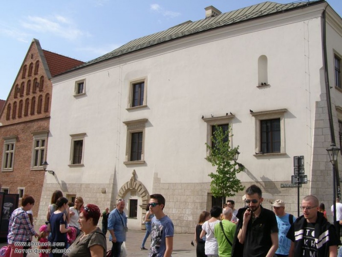 За часів Великого Казимира, коли Окул отримав міські права, стояли тут суконні крамниці того містечка. Імовірно, вони були побудовані за наказом короля Локетка. Сьогодні можна подивитись їх залишки в підвалах будівлі. У другій половині XІV століття проведено парцеляцію ділянок і побудовано дві кам'яниці.