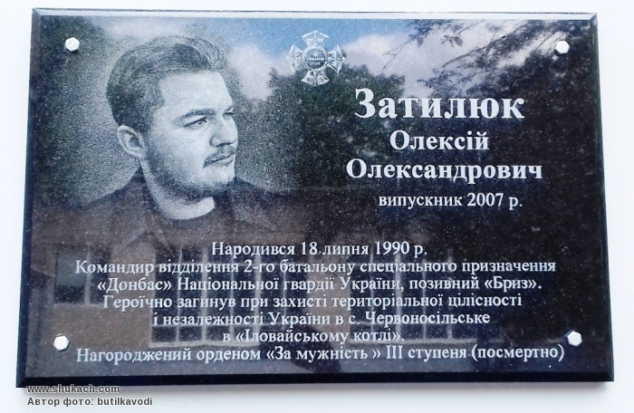 Затилюк Олексій Олександрович народився 18 липня 1990 р. в селищі Леніне в Криму. Солдат резерву, команлир відділення 2-го батальону спецпризначення НГУ "Донбас".