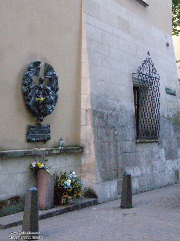 Встановлений 18 листопада 2008 року на стіні греко-католицького храму св. Норберта (Воздвиження Чесного Хреста).