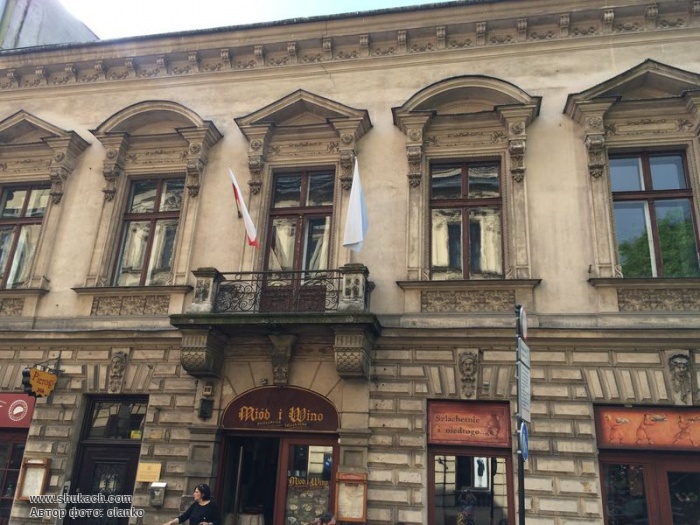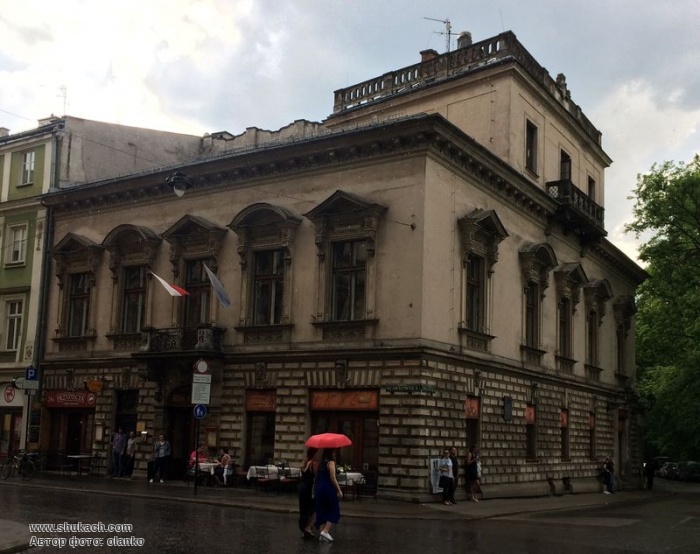Побудований у 1883 році за проектом Кароля Заремби. У 1920-х роках став власністю родини Баденів. Спочатку будівля була одноповерховою. Її прикрасами були обрамлення великих вікон, маскарони та інші архітектурні деталі. В такому вигляді палац перебував до 1921 року. Тоді до головного корпусу був добудований бельведер з балконом, кам’яна балюстрада і стилізований гербовий картуш. Проектантом цих змін був відомий краківський архітектор Юзеф Покутинський. В такому вигляді будівля дійшла до наших часів. Зараз тут знаходиться інститут мистецтв університету імені папи Іоанна Павла ІІ, а на першому поверсі – ресторан «Мед і вино».
