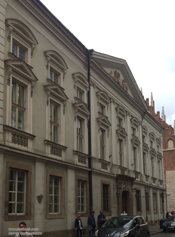 Інша назва – Колегіум Фізікум Ягеллонського університету. Історія цього місця сягає пізнього середньовіччя. Тоді тут знаходилось декілька будинків: кам'яниця Приамовська, від сторони вулиці святої Анни, біля неї кам’яниця «Під коником», де спочатку Марк Шаффенбергер відкрив друкарню, а потім Мацей Сібенейчер продовжив цю справу. Поряд з цими будинками стояла камяниця «Під топорцем», власність бенедиктинців, а також бурса Смешкова, заснована лікарем Вавринцем Смешковичем у 1646 році.