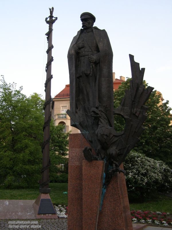 Відкриття пам’ятника відбулось у 90-ту річницю незалежності Польщі, 10 листопада 2008 року. Автор пам’ятника – скульптор Чеслав Джвігай. Пам’ятник складається з трьох частин: скульптури маршала, скульптурної групи легіонерів і флагштоку. У ніг маршала – польський орел, що злітає.