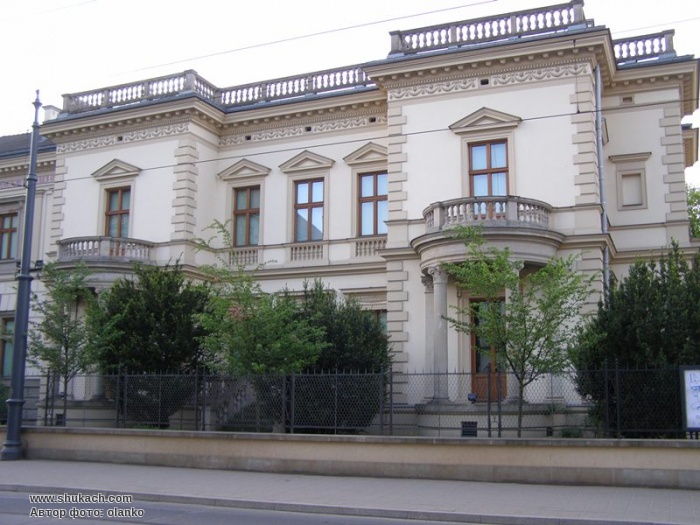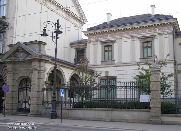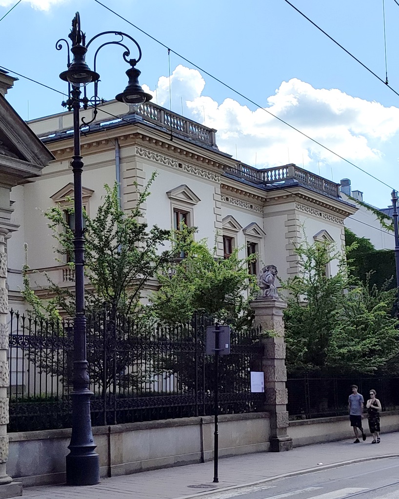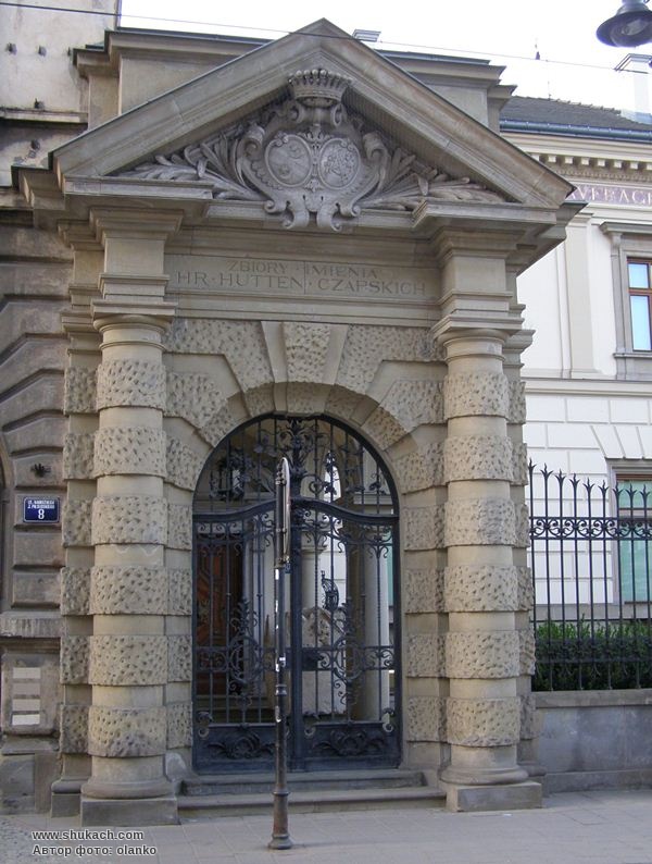 Перша назва – палац Красинських, пізніше – палац Гуттен-Чапських. У 1883 році Хуберт Антоній Красинський, лікар і громадський діяч, переїхав у Краків зі свого маєтку в Україні і почав будувати палац в неоренесансному стилі за проектом Антонія Сідека. Будівництво було завершено у 1884 році. Власник прожив тут до своєї смерті у 1890 році. У 1894 році палац придбав колекціонер Емерик Гуттен-Чапський, який розмістив тут велику колекцію (більше 11 тисяч монет, орденів, медалей і малюнків) і перевіз зі свого родинного маєтку велику бібліотеку. Новий власник замовив Тадеушу Стриженському добудувати до існуючої будівлі павільйон. Коли він був у 1896 році завершений, на його фасаді був зображений напис латиною «Monumentis Patriae naufragio ereptis» (пам’ятники Вітчизни, врятовані з давніх часів).