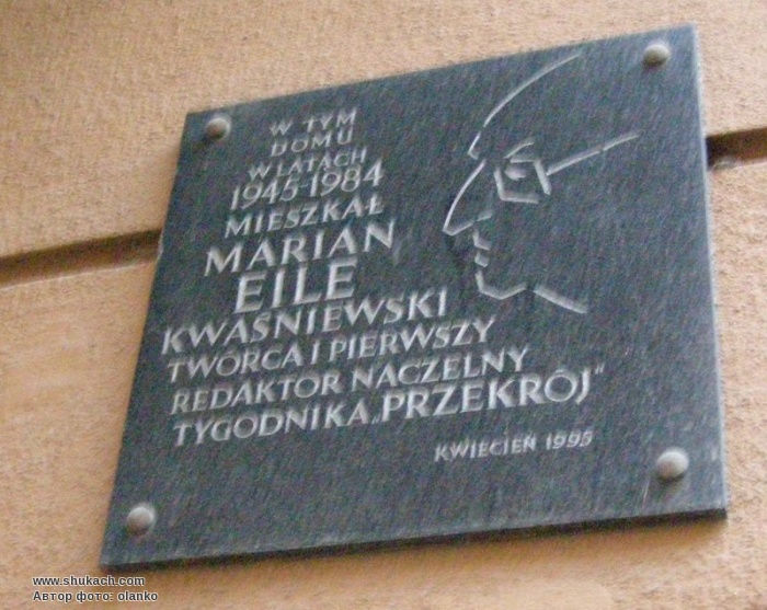 Польський журналіст, сатирик, художник і сценограф Маріан Ейле-Квасьневський (1910-1984) з 1945 року жив в цьому будинку. Меморіальна дошка встановлена у 1995 році.
