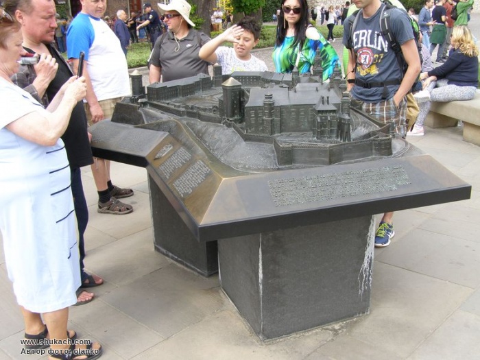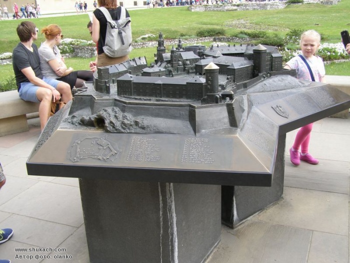 Виконаний з бронзи і встановлений на постаменті з чорного граніту на території Вавельського замку, поблизу виставково-конференційного центру. На бічних стінках знаходяться написи польською і англійською мовою і шрифтом Брайля для незрячих людей. Макет є одним з кільканадцяти, які увійшли до складу проекту «Королівська Дорога для непідготовленого туриста». Автором цього макету, як і інших, є краківський митець Кароль Бадиня.