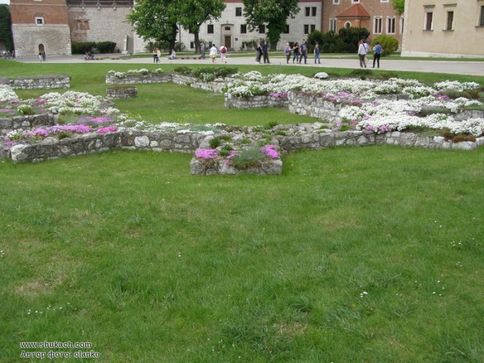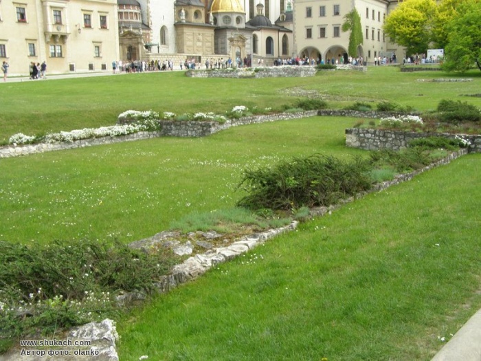 В центрі вавельського пагорбу – залишки фундаментів трьох будівель: костелу св. Михайла, костелу св. Іржи і будинку каноніка Станіслава Борка.