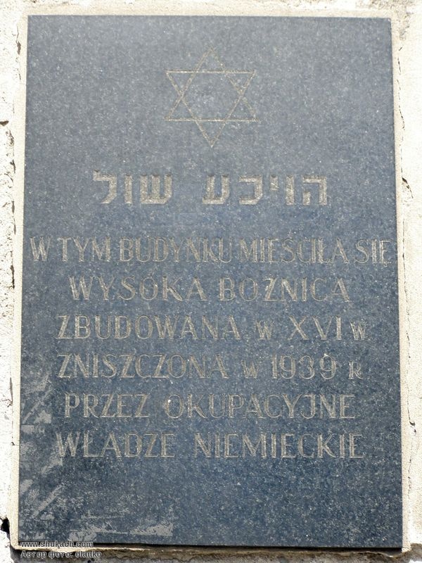 Висока синагога була третьою молельнею у єврейському Казимежі (до неї були ще Стара і Нова синагоги). Побудована після 1556 року, але не пізніше 1563 року. Свою назву вона отримала через те, що молитовний зал в ній знаходився на другому поверсі. Таке нетипове положення молельні було продиктовано вимогами безпеки: синагога стояла у людному місці у воріт єврейського міста, поряд з християнською територією. Наприкінці 1880-х років частиною синагоги стали чоловічі і жіночі молельні, що були розташовані на другому поверсі сусіднього будинку.