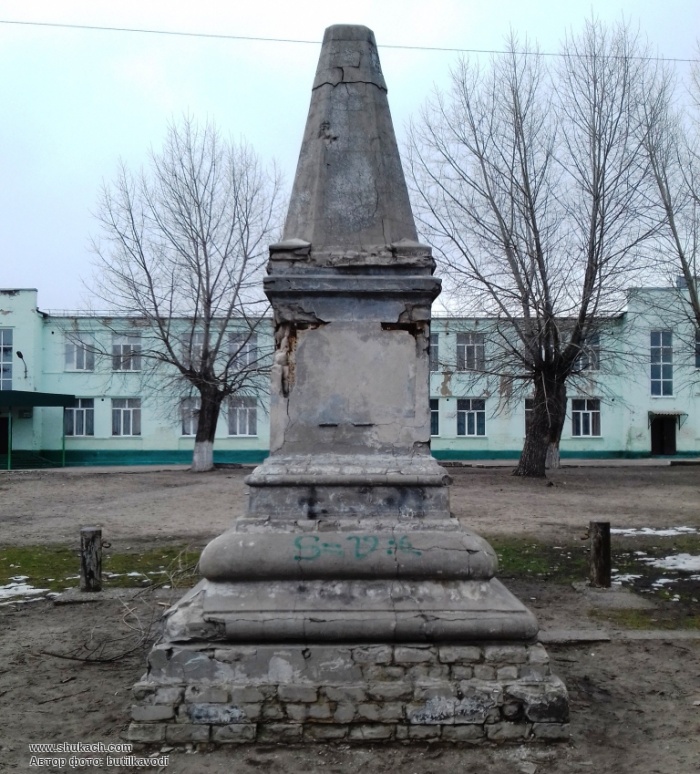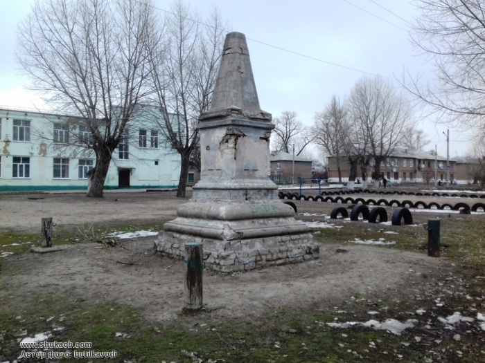 На пам’ятнику була дошка, яка розповідала перехожим кому саме і за які досягнення споруждено обеліск.