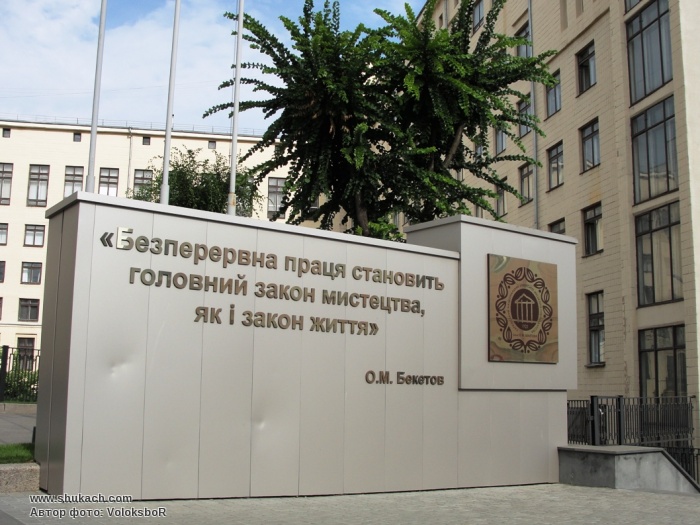 Довідка. Беке́тов Олексі́й Микола́йович (19 лютого (3 березня) 1862, Харків — 23 листопада 1941, Харків) — український архітектор і педагог, заслужений діяч мистецтв УРСР (1941). У 1885 закінчив Петербурзьку академію мистецтв. Від 1898 — професор Харківського технологічного інституту (згодом, з 1930 — Харківського будівельного інституту). У Харкові збудував багато громадських і житлових споруд. За проектами Бекетова будували також в містах Новочеркаську, Катеринославі, Ростові-на-Дону, Києві, Сімферополі.