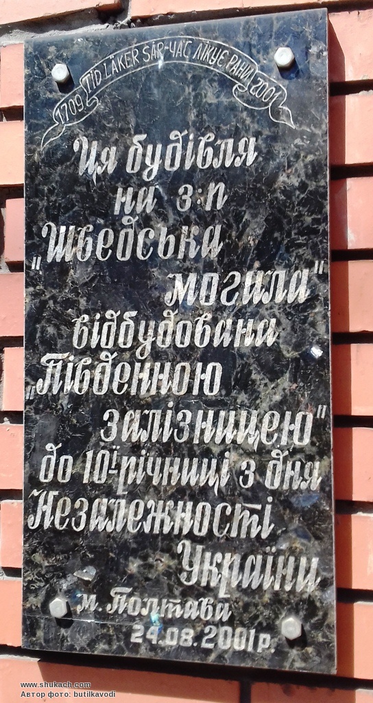 "Укрзалізниця" присвятила цій значній події в новітній історії України і відбудову нової будівлі на залізничній станції Шведська Могила. Тут побудували нові приміщеня кас та зали очикування. Будиносок невеличкий але дуже симпатичний - він нагадує невеличку шведську фортецю, що цілком вписується в атмосферу місцевісті - поруч знаходиться музей Полтавсбкої битви.