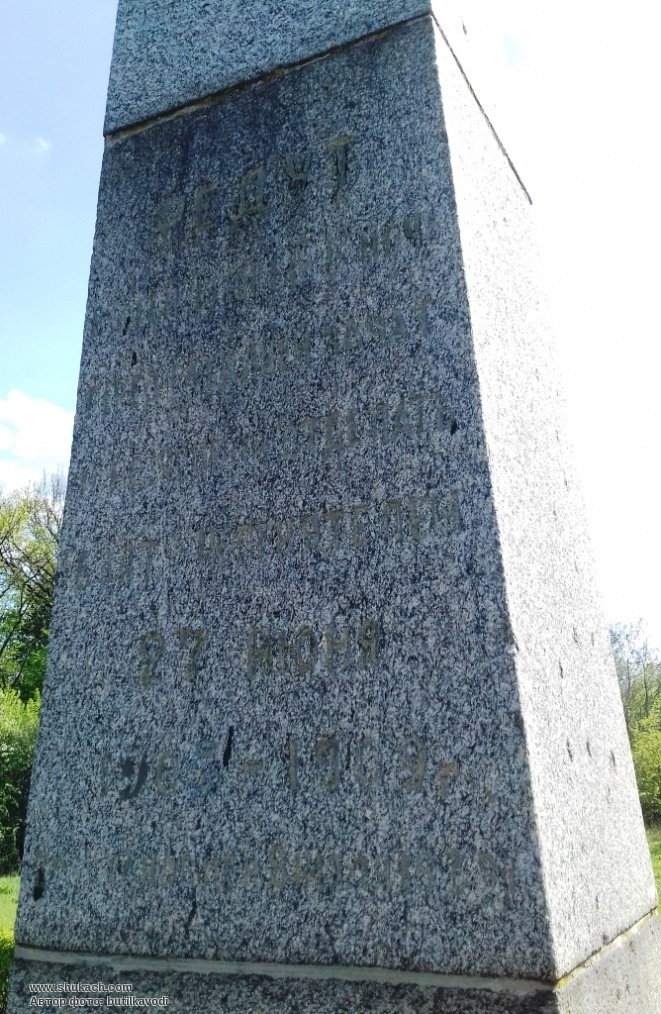 На пам'ятному знаку (обеліску), що встановлено на місці другого редуту з десяти, що було споруджено росіянами на полі Полтавської битви, вказано, що це незавершене укріплення було захоплене супротивников.