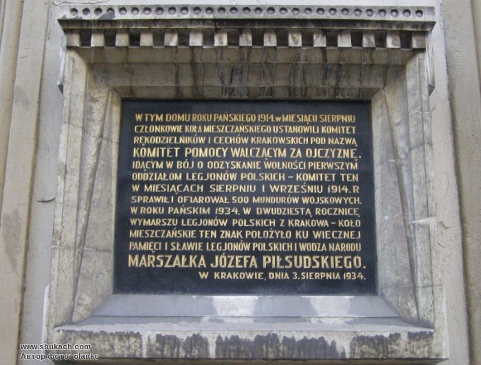 У серпні 1914 року жителі Кракова заснували комітет допомоги воїнам, які відправлялись на війну з Російською Імперією. Він розміщувався в цьому будинку. На зібрані комітетом кошти було закуплено і передано загонам польського легіону 500 мундирів. Меморіальна дошка встановлена у 1934 році.