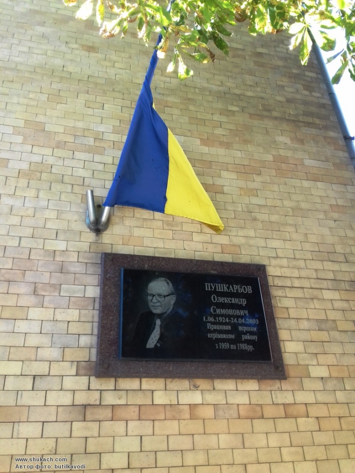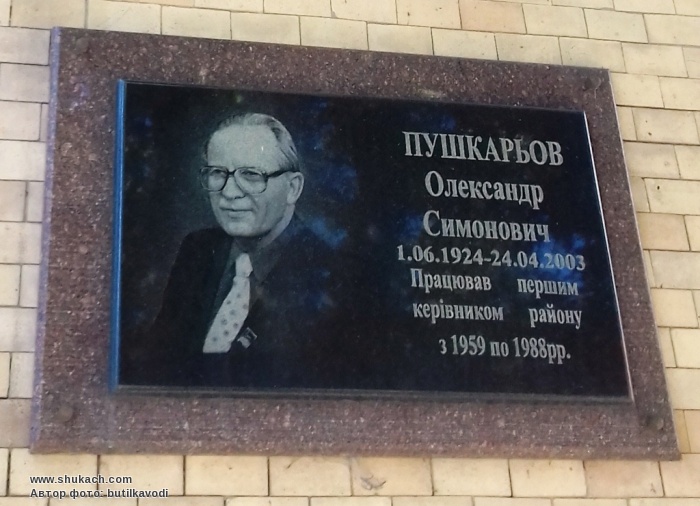 20 грудня 2003 року на будівлі суду у центрі Змієва, де раніше знаходився райком (вул. Адміністративна, 6), було урочисто відкрито меморіальну дошку видатній людині свого часу, колишньому першому секретарю райкому компартії Олександру Симоновичу Пушкарьову.
