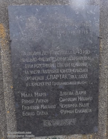 Пам'ятний знак підпільній комсомольськїй організації "Спартак" в с. Красногірка