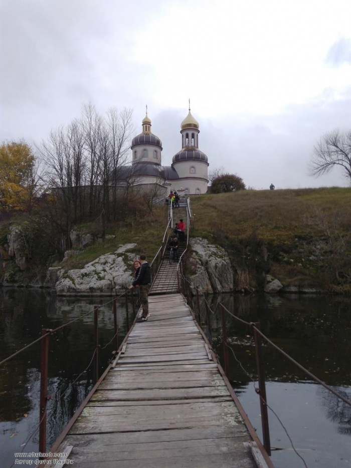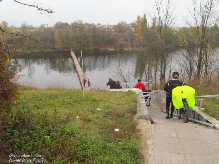 Пішохідний міст, понтонний міст. Міст через річку Рось. Вознесенська церква зведена в рідному селі письменника І.С. Нечуя-Левицького.