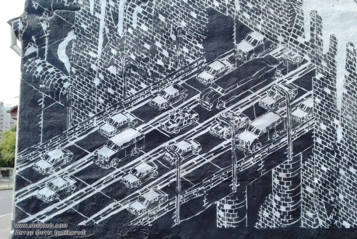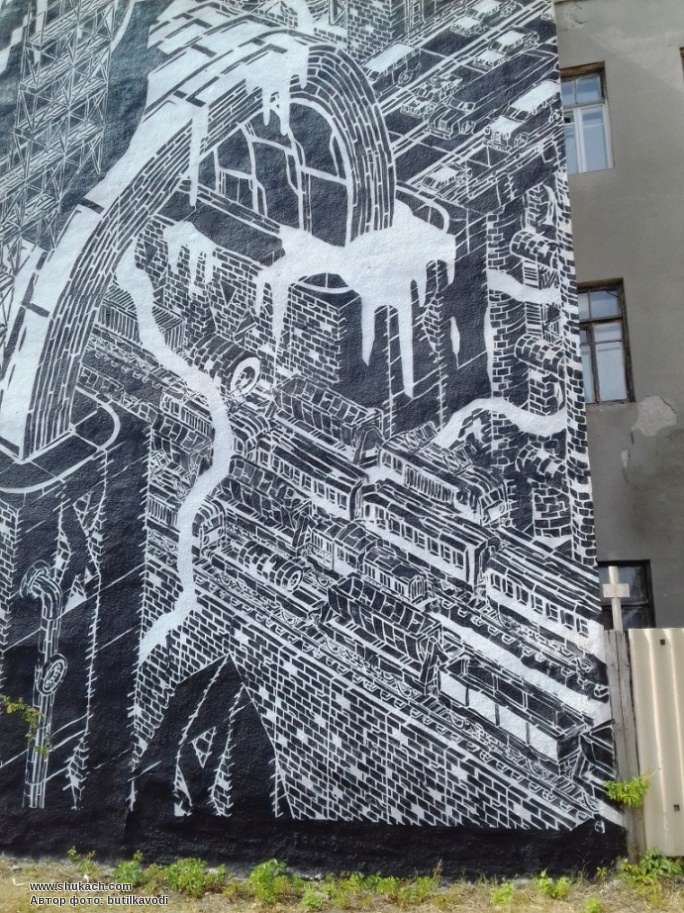 Мурал "Людська голова", вміщена в міський простір, потрапив до top кращих творів вуличного мистецтва на думку редакції сайту «I support street art» у 2017 році. Художник зобразив картину висотою на весь будинок. Робота виконана в чорно-білих тонах.