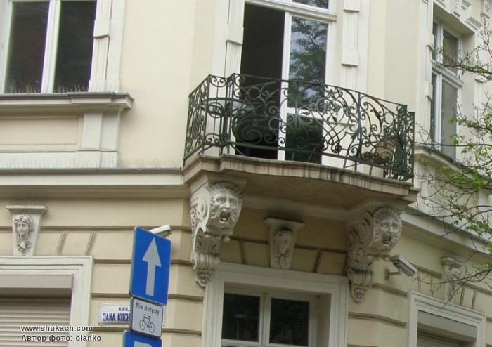 Будинок у стилі бароко на розі вулиць Грабовського і Кохановського. Опори балкону прикрашені маскаронами. На фасаді будинку – невеличка анотаційна табличка.