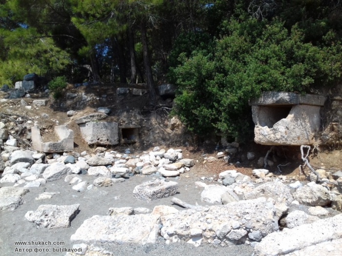Окремі кам'яні саркофаки зараз лежать в воді. Багато могил-саркофагів можна зустріти доволі довго вздовд стежки, що веде на павніч від міста - це Лікійська туристична стежка.
