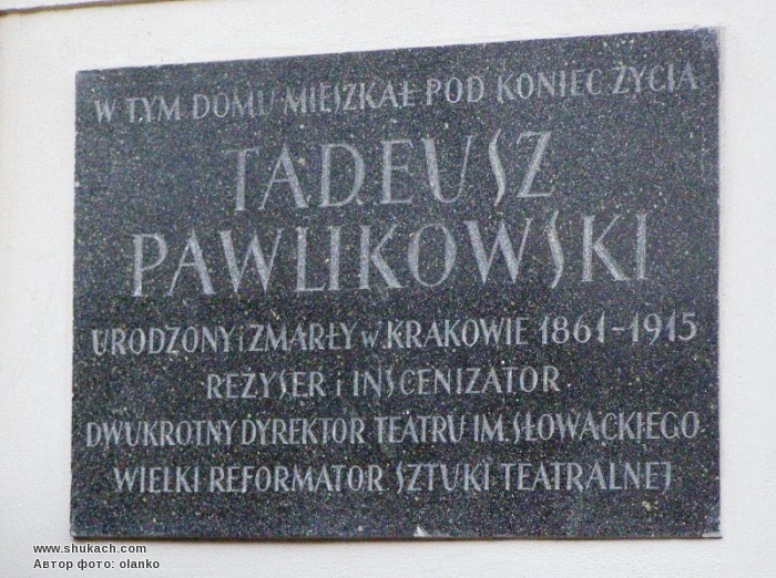 Режисер і директор театру ім. Юліуша Словацького Тадеуш Павліковський (1862-1915) жив у цьому будинку.