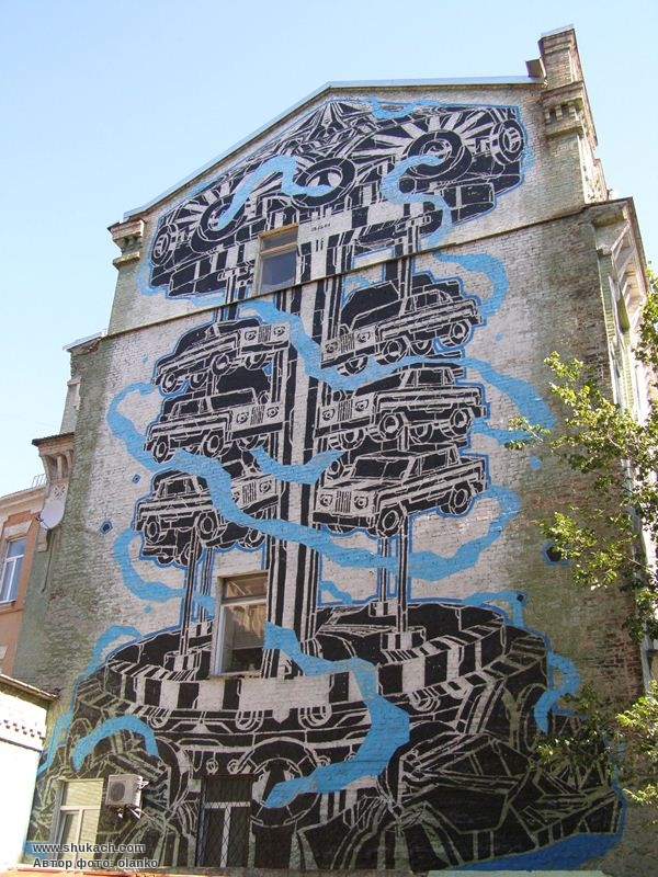 Мурал «Карусель» створений у 2015 році в рамках арт-проєкту City Art. Автором роботи є польський художник Mariusz Waras (M-city).На стінописі зображений великий механізм з автомобілями всередині. За словами художника – це карусель на якій обертаються автомобілі.