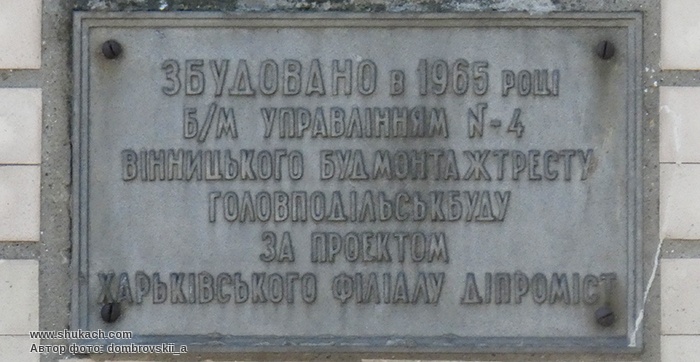 Пам'ятна дошка "Збудовано в 1965 році" в м. Вінниця