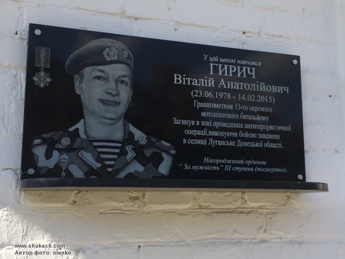 Випускник гімназії В.А.Гирич віддав життя в бою за незалежність і територіальну цілісність України. В пам’ять про Віталія Гирича в серпні 2016 року на будівлі Корюківської гімназії встановлена меморіальна дошка.