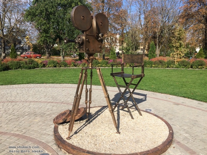 Встановлений у вересні 2019 року на честь знаменитого уродженця Сосниці кінорежисера О.П.Довженка. Пам’ятний знак представляє собою двометрову кінокамеру на тринозі, біля якої лежать бобіни з назвами фільмів Довженка – «Звенигора», «Арсенал», «Земля». Автор композиції – місцевий коваль Віталій Онищенко.