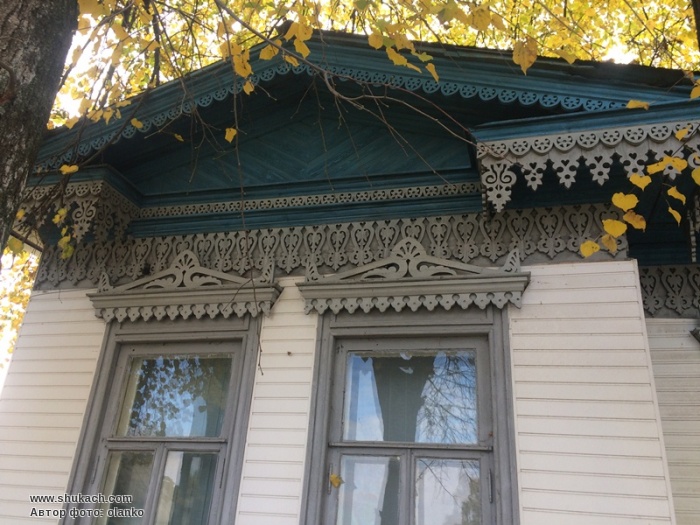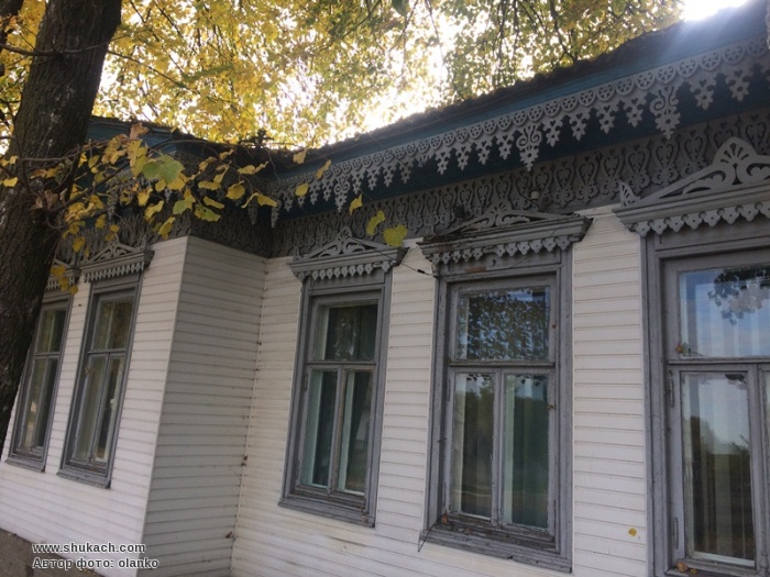 Вікна та карнизи одноповерхового будинку початку 20-го століття прикрашені багатим дерев’яним різьбленням, характерним для будинків цієї місцевості. Потенційний об’єкт для проекту «Дерев’яне мереживо Чернігівщини».