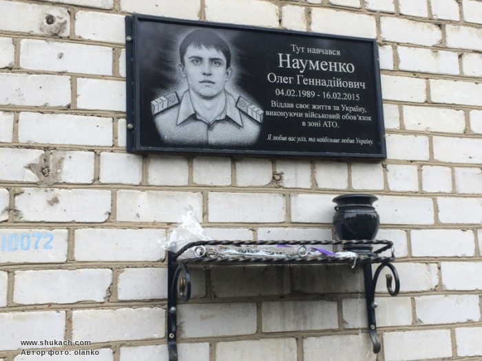 Випускник школи О.Г.Науменко у 2015 році віддав життя за незалежність і територіальну цілісність України. Дошку урочисто відкрито 6 травня 2016 року.