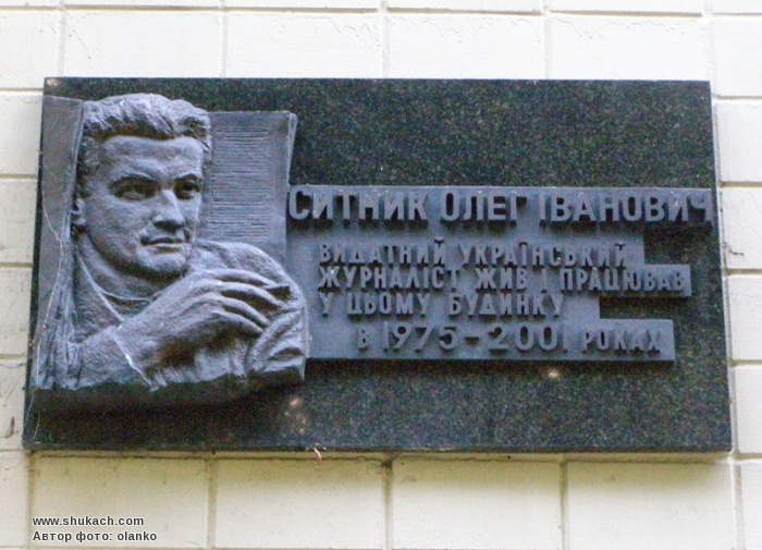 Видатний український журналіст О.І.Ситник жив в цьому будинку у 1975-2001 роках. Дошку урочисто відкрито 5 травня 2009 року. Автори – скульптор Володимир Іваненко, архітектор – Олег Стукалов.