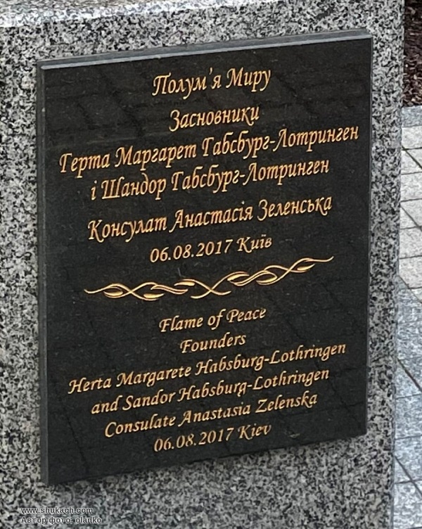 У Києві 6 серпня 2017 року відкрили пам’ятний знак «Полум’я миру», ініціаторами встановлення якого виступили спадкоємці Австрійських імператорів – Його Імператорська Високість ерцгерцог Австрії, Королівський принц Угорщини та Чехії, князь Тоскани Шандор Габсбург-Лотрінген та її Імператорська Високість Герта Маргарет Габсбург-Лотрінген.