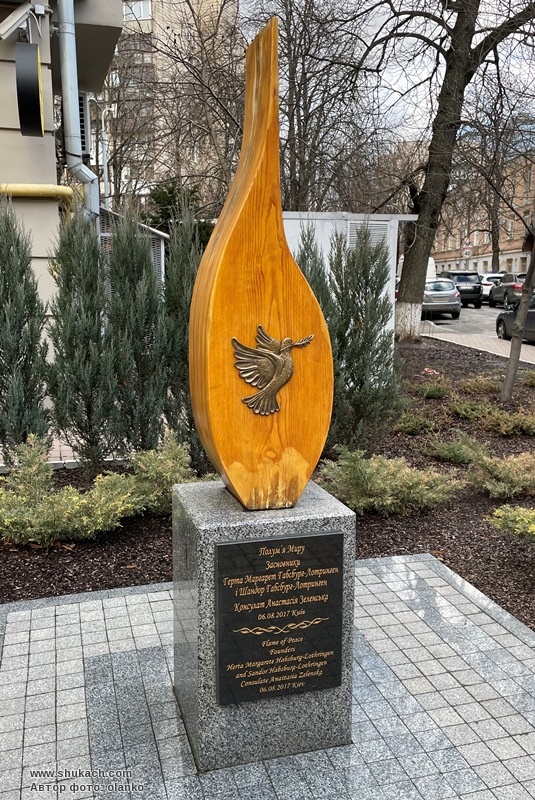 "Цей пам'ятник є нагадуванням, а також спонуканням до того, щоб ми всі діяли і мислили і сприяли миру на землі. Цей пам'ятник зроблений з деревини (горіхове дерево - ред.) та каменю, і ці обидва матеріали можна знайти на будь-якому континенті світу", - сказала засновниця і президент асоціації "Полум'я миру" (The Flame of Peace), посол миру, її імператорська високість пані Герта Маргарет Габсбург-Лотринген під час відкриття пам'ятника.