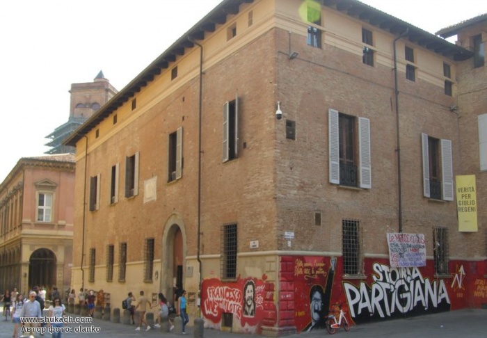 Зведений будівничим Саларолі наприкінці 15-го століття. В палаццо збережене красиве внутрішнє подвір’я з фресками 16-го століття. На першому поверсі – збереглися фризи роботи Доменіко дельі Амброджі і Джіроламо Курті (близько 1620 р.).