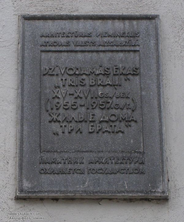 "Три брати" - найстаріший комплекс житлових будинків, що зберігся в Ризі з XV століття. Свою назву середньовічні будівлі, що тісно притиснулися одна до одної, отримали дуже давно – згідно з легендою, їх справді побудували троє чоловіків одного роду. Сьогодні у цих будинках, історія яких налічує кілька століть, розташовані Музей архітектури та Державний центр охорони пам'яток культури.