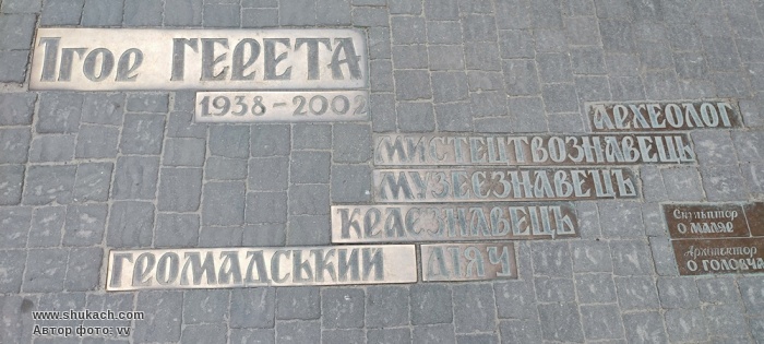 Бронзова постать Ігоря Ґерета зображена в русі в повний зріст із сумкою — митець крокує вулицею в напрямку обласного музею. Скульптура висотою 2 метри. Скульптор Олександр Маляр. Гроші на скульптуру зібрали друзі та учні Ігоря Ґерети. Пам'ятник Ігорю Ґереті відкритий 25 вересня 2016 року