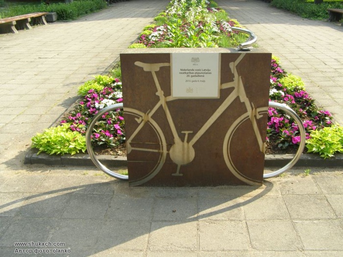 Пам'ятник велосипеду було встановлено у парку Еспланаді у 2011 році, але монументом його, по суті, назвати не можна, скоріше символом. Він приїхав до Риги з Голландії, прямо з Амстердама, як подарунок посольства Нідерландів на честь 20-річчя незалежності Латвії. У столиці Голландії велосипедний транспорт дуже популярний, більш ніж десь у Європі. Цей жест, хай трохи і екстравагантний, насправді є досить показовим проявом дружньої схильності європейських країн до Латвії, яка отримала свою незалежність порівняно недавно.