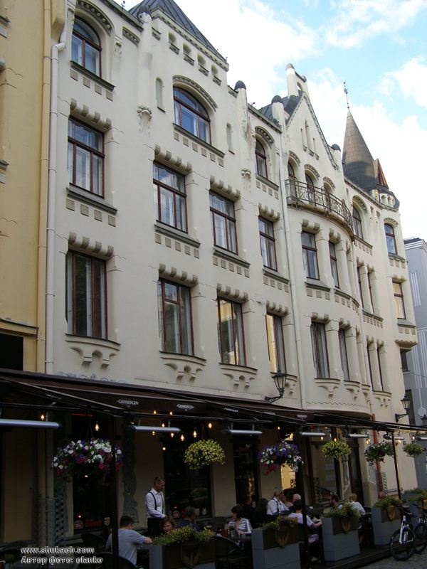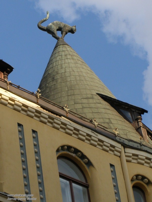 На площі Ліву, навпроти Великої гільдії, на вежах однієї з кутових будівель стоять ковані з міді коти. Згорблені, з піднятими хвостами, вони наче застигли перед вирішальним стрибком. Завдяки цим котам і отримав свою назву знаменитий і своєрідний «Кицькін дім», який колись був овіяний скандальною славою і став свого часу навіть причиною судового позову. Сьогодні коти не лише сидять на даху будівлі, а й розташувалися на нижньому поверсі.