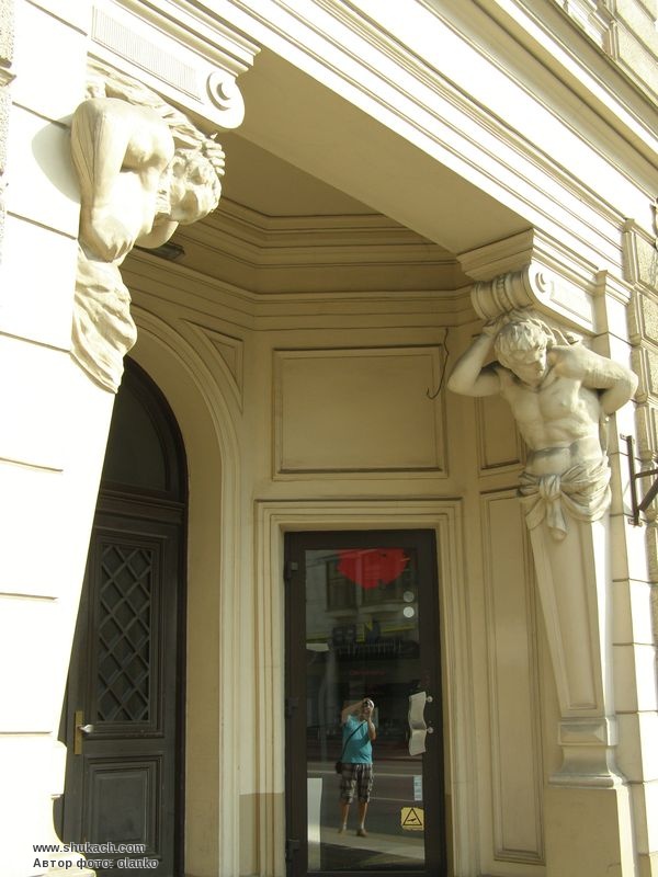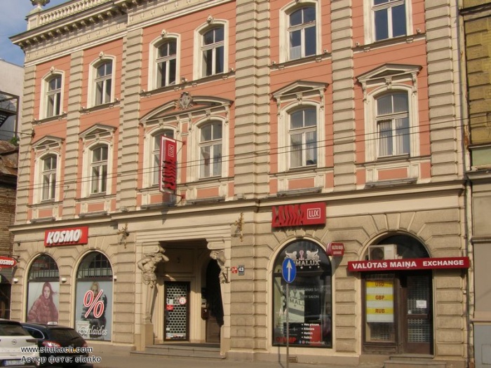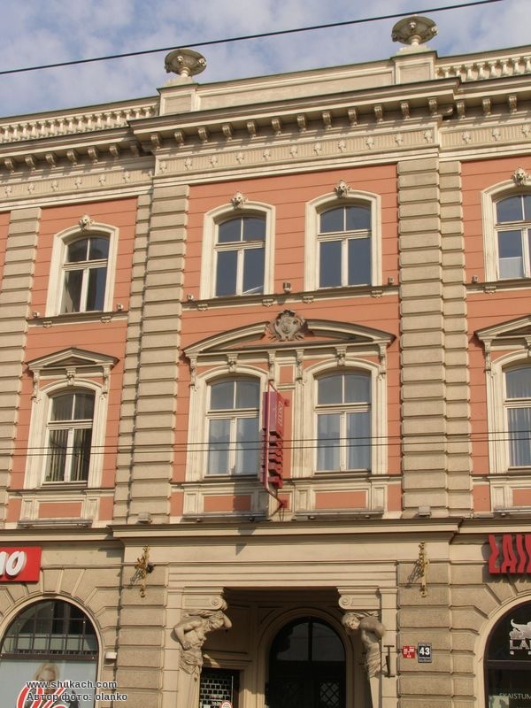 Триповерховий житловий будинок зведений у 1877 році за проектом архітектора П.Хайденакса. Фасад має горизонтальний руст різного розміру. Його увінчує балюстрада з декоративними вазами. Вхідний портал прикрашають торси атлантів.