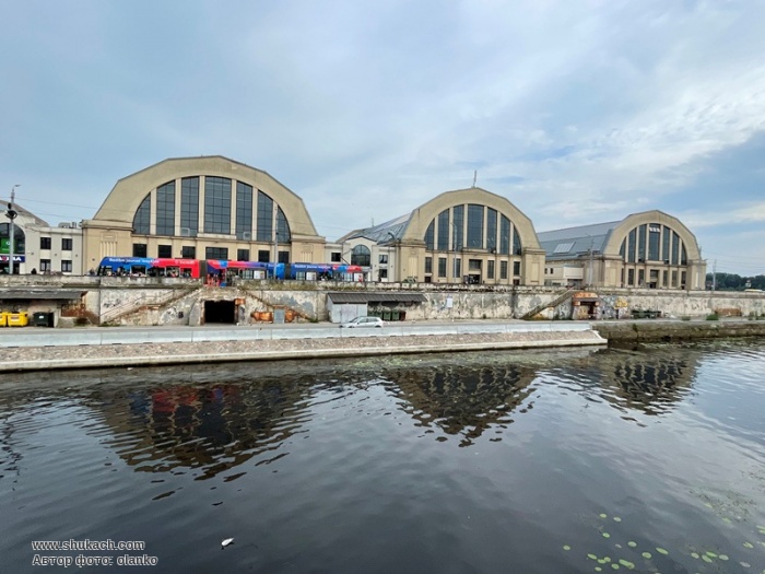 Будівлі, які стали ринком та частиною Риги, спочатку будувалися в Курземі (Kurzeme) і Вайнеді (Vaiņode), як ангари для дирижаблів німецької армії. «Хрещеним батьком» ринку вважається керівник відділу торгівлі ради міста Риги того часу Клав Лоренцс (Klāvs Lorencs), який вирішив використовувати залізні конструкції ангарів як фундамент торгових новобудов.