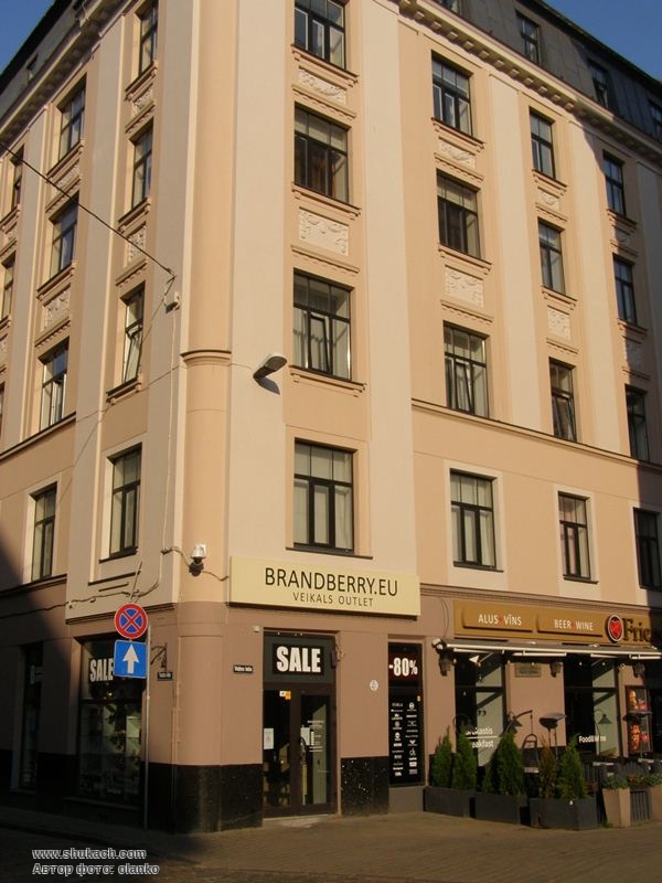 В цьому будинку у 1945-1949 роках жив видатний латиський співак Рудолфс Берзіньш. Текст латиською і російською мовами.