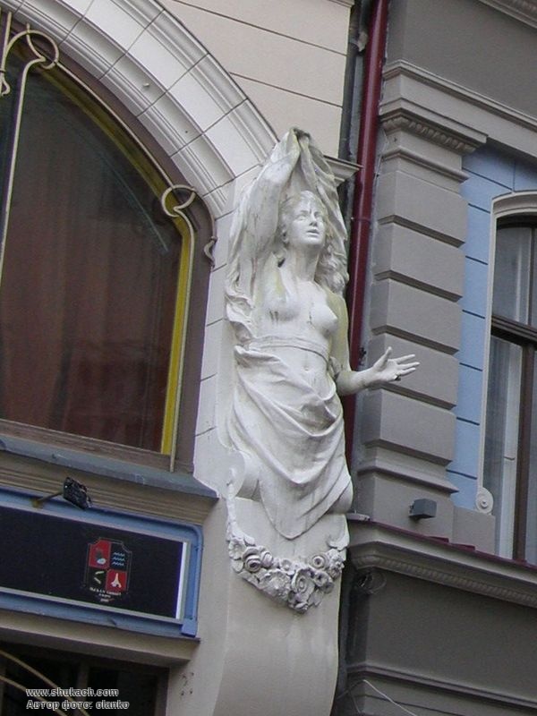 Декоративний будинок у стилі модерн зведений у 1900 році за проектом архітектора Фрідріха Шеффеля на замовлення Х. Детманіса. Для фасаду будівлі використовувались оздоблювальні матеріали різних видів та кольорів. Симетричний фасад підкреслено еркером з балконами з обох боків. Вхідний портал акцентований скульптурними формами та маскаронами. Пілястри, розташовані на боках фасаду будівлі, виростають у виразні жіночу і чоловічу скульптури. Металеві поковки у стилі модерн прикрашають вікна двох нижніх поверхів, а також розміщені над дахом будівлі.
