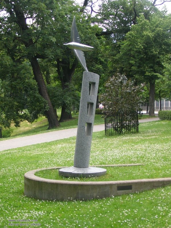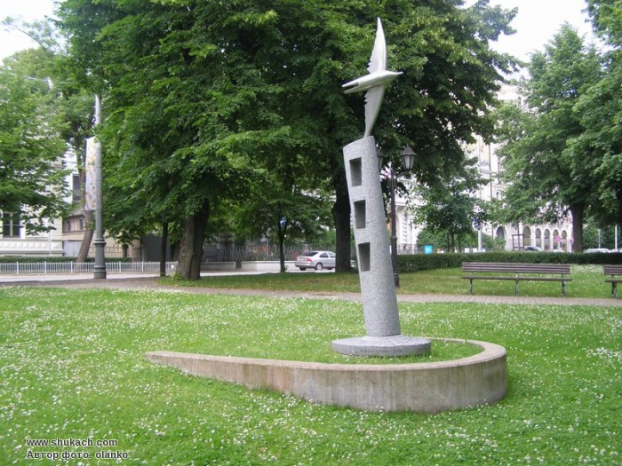 У 2005 році виконавчий директор Товариства Ризької премії Хелена Грінберга виступила з ідеєю встановлення меморіалу «Ризька премія», але архітектор Яніс Крастіньш вибрав відповідне місце для скульптури і доповнив її напівкруглою терасою. Скульптура скульптора Геннадія Степанова висотою 4,5 м являє собою аналог статуетки, виконаний у масштабі 8:1, - пілон з трьома стилізованими віконними отворами, що нагадує характерний для міста архітектурний мотив, в кінці якого вміщено блискучу сталеву скульптуру, що зображає чайку у польоті.