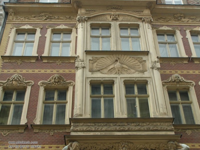 Фасад будівлі прикрашений різноманітними орнаментальними рельєфами та скульптурними формами у стилі модерн, а мансардні вікна прикрашені стилізованим сонячним мотивом. Пам’ятка архітектури національного значення.