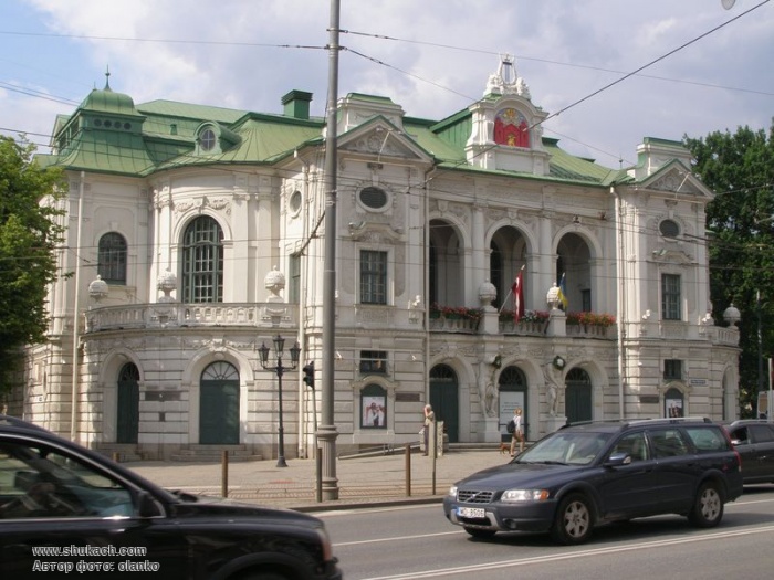 На довгій металевій пластині повідомляється, що 18 листопада 1918 року у цьому театрі на зборах громадськості Риги була проголошена незалежність Латвії. Нижче ще одна табличка з аналогічним текстом на англійській, німецькій і російській мовах.