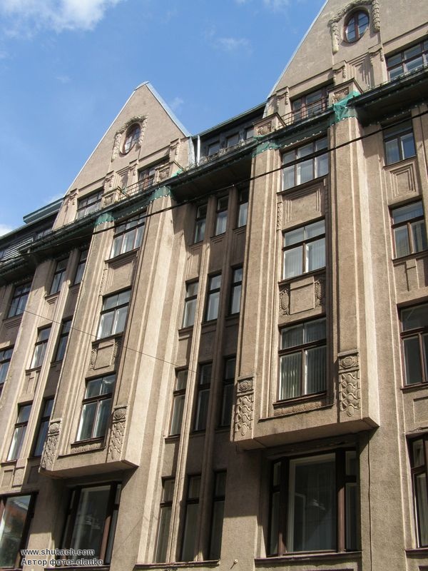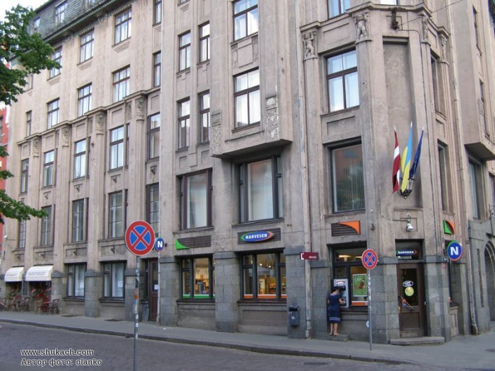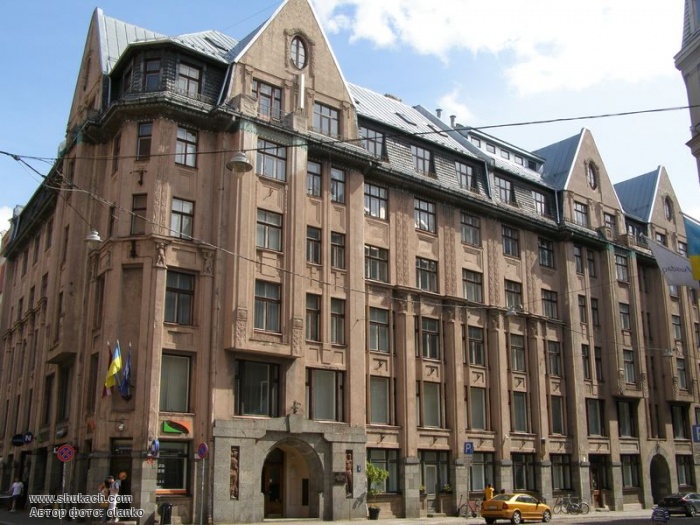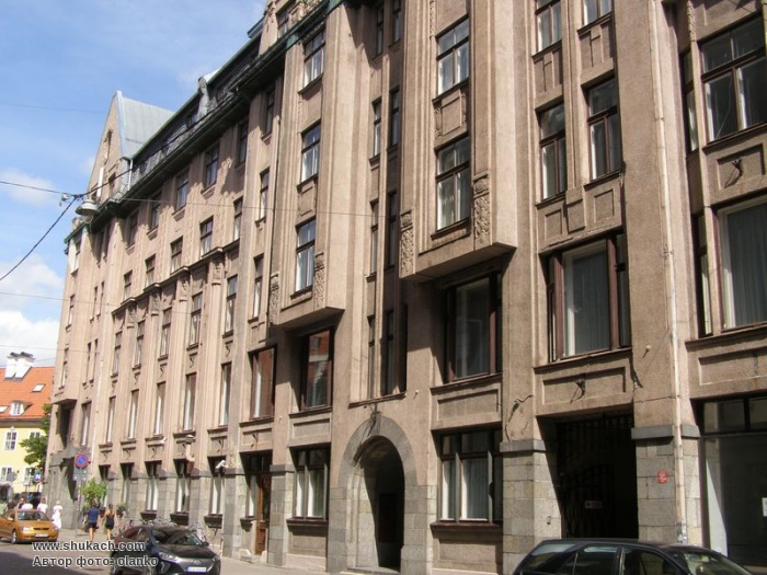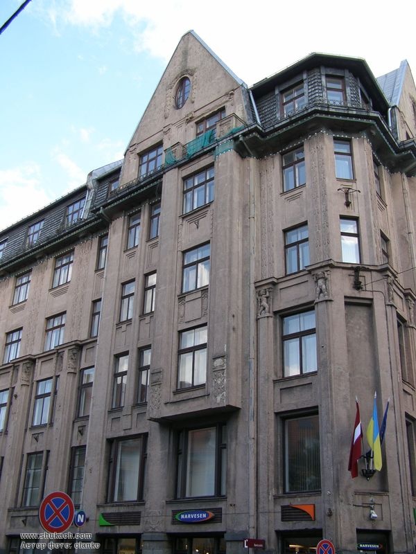 П’ятиповерховий будинок з мансардним поверхом зведений у 1938 році за проектом архітектора Олександра Бірзенієка для розміщення міністерства освіти. Має гарне поєднання класичних форм, характерних для архітектурного мистецтва 1930-х років, із національною символікою та матеріалами. Фасади прикрашені орнаментами і фігурками дітей. Зараз на першому поверсі крамниці і кафе. Пам’ятка архітектури національного значення.