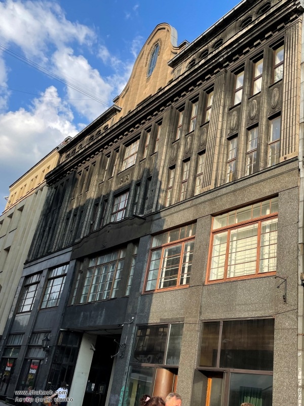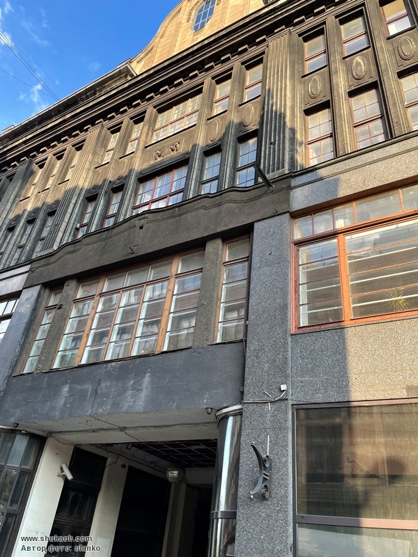 П’ятиповерховий прибутковий будинок зведений у 1914 році. Перші два поверхи займають офіси і крамниці. Фасад прикрашений профільованими пілястрами і рельєфними вставками. Фронтон складної форми має велике восмикутне вікно. Пам’ятка архітектури національного значення.