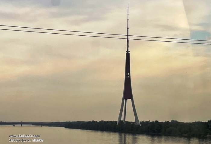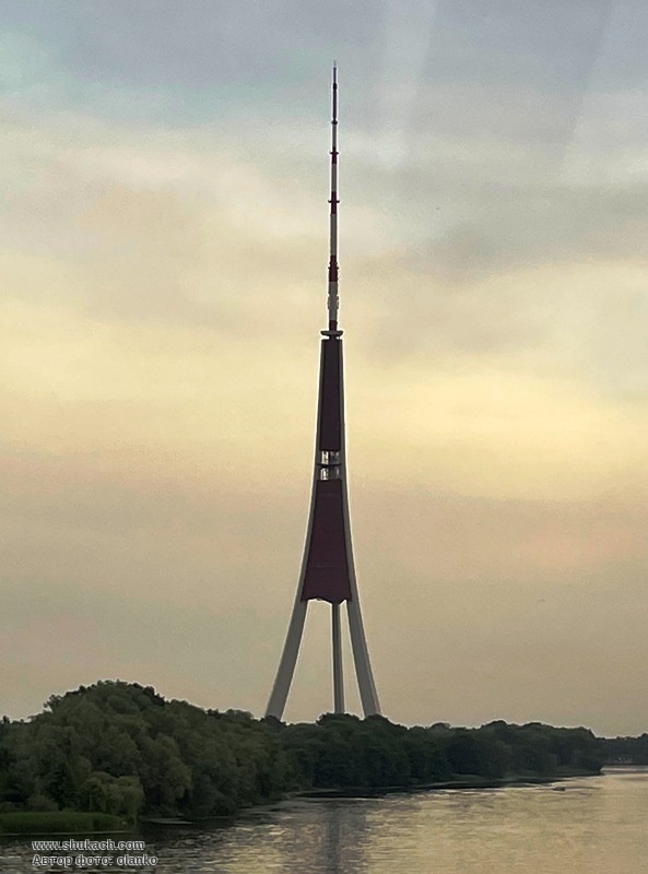 Вежа побудована на острові Закюсала («Заячий острів») посеред річки Даугава на висоті 7 м над рівнем моря. Її висота – 368,5 м. Опори фундаменту заглиблюються у землю на 27 м, упираючись у доломітовий шар. Сама вежа зовні є конструкцією з трьох «ніг» (опор головної конструкції) і шпиля. У двох «ногах» є швидкісні ліфти, що піднімають на висоту 97 метрів за 52 секунди, а в третій — резервні сходи та кабелі, що йдуть з адміністративної будівлі до передавачів.